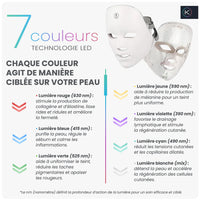 Le Light Mask Pro utilise 7 longueurs d'onde LED différentes, chacune ciblant des problématiques cutanées spécifiques. Cette technologie médicale stimule l'activité cellulaire en profondeur sans UV nocifs.